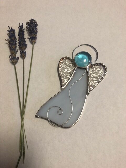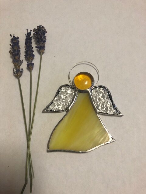 Tiffany technikával készített, üveg. Elhelyezhető ajtóra, karácsonyfára, ablakba, hálószobába.